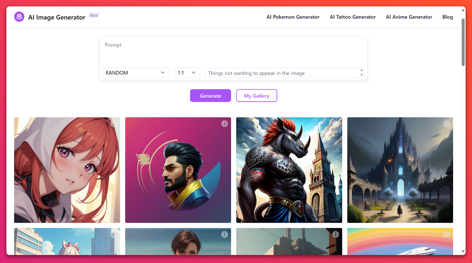 在线 AI 工具 AI Image Generator 提供完全免费的 100%图像生成服务,支持纹身、动漫、3D 表情等多种风格。用户可以按照个人喜好选择不同的生成器,将创意快速转化为视觉艺术形式。
