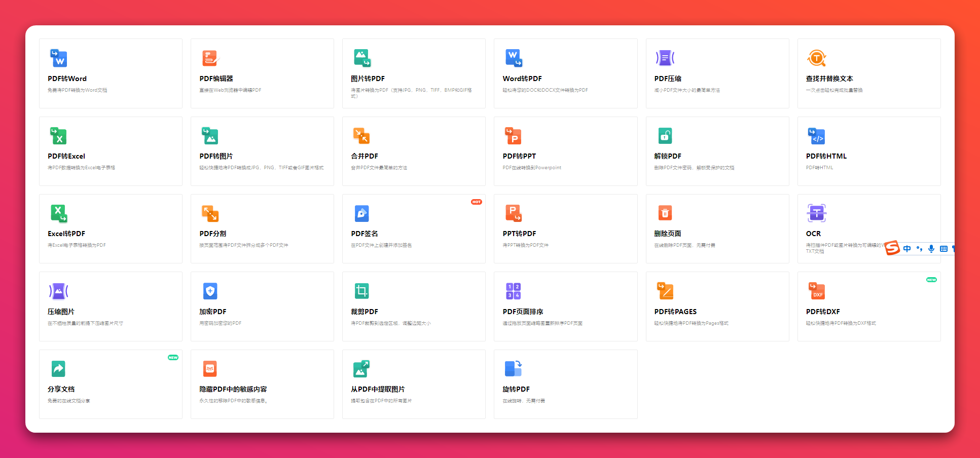 包含了转换、压缩、电子签名和超过20种 PDF 工具。
